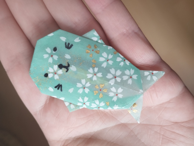 Le pliage est réalisé à la main par mes soins avec du papier traditionnel japonais, le papier "Washi" en fibre de mûrier ou de gentiane.