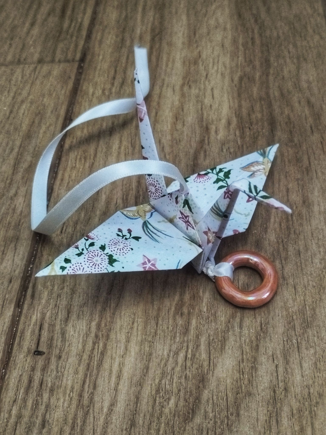 Matériaux : papier japonais, ruban satin, perle décorative.