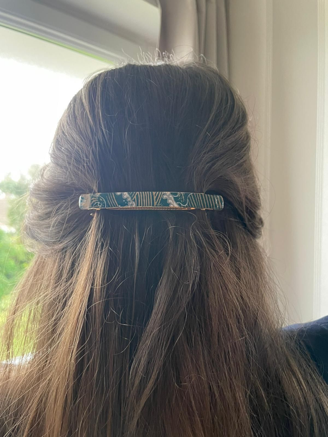 - Chaque barrette est une pièce unique, façonnée à la main dans le respect du savoir-faire artisanal. Idéale au quotidien comme pour les occasions spéciales, elle sublime aussi bien les cheveux lâchés qu’une coiffure relevée.